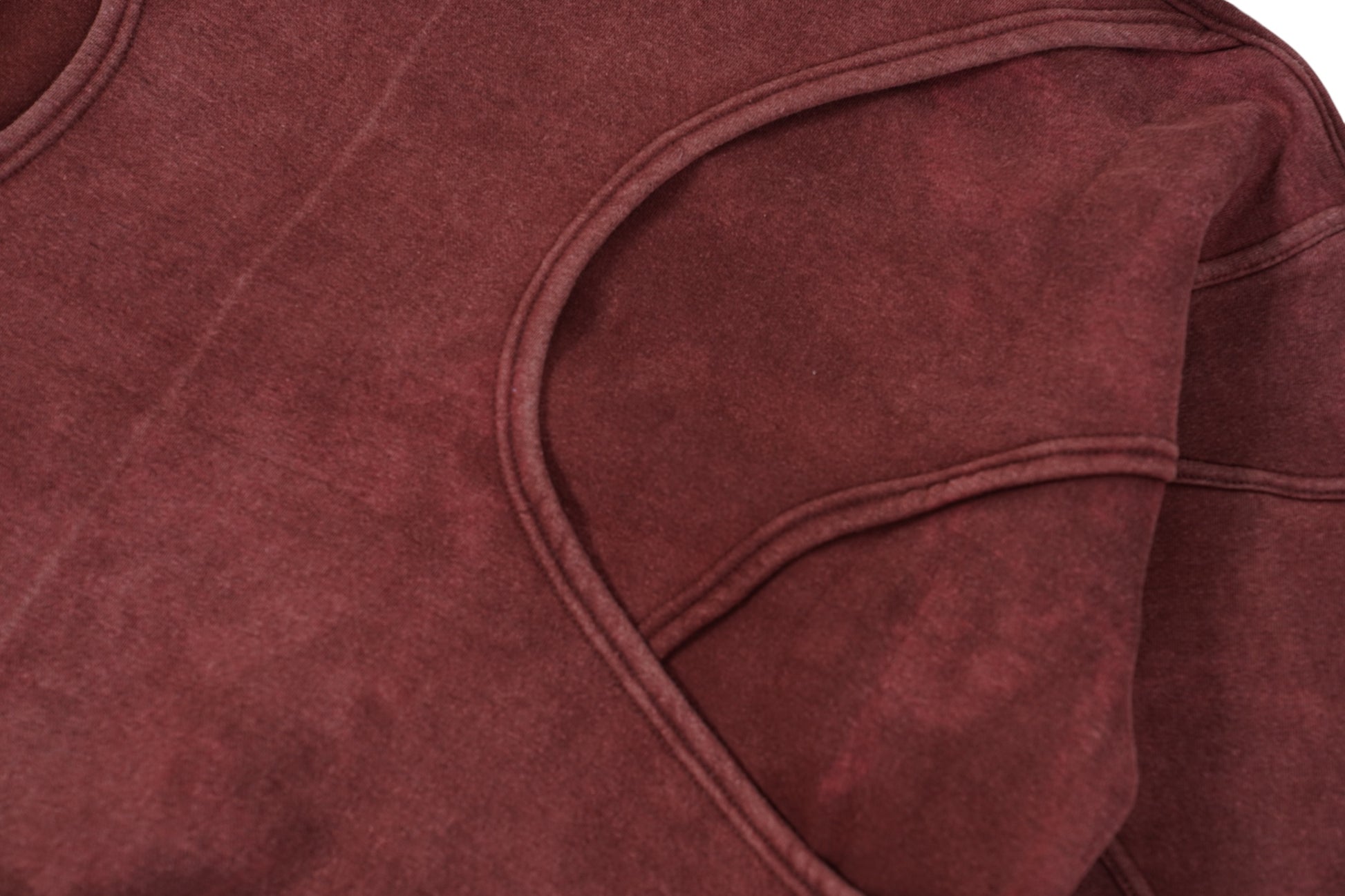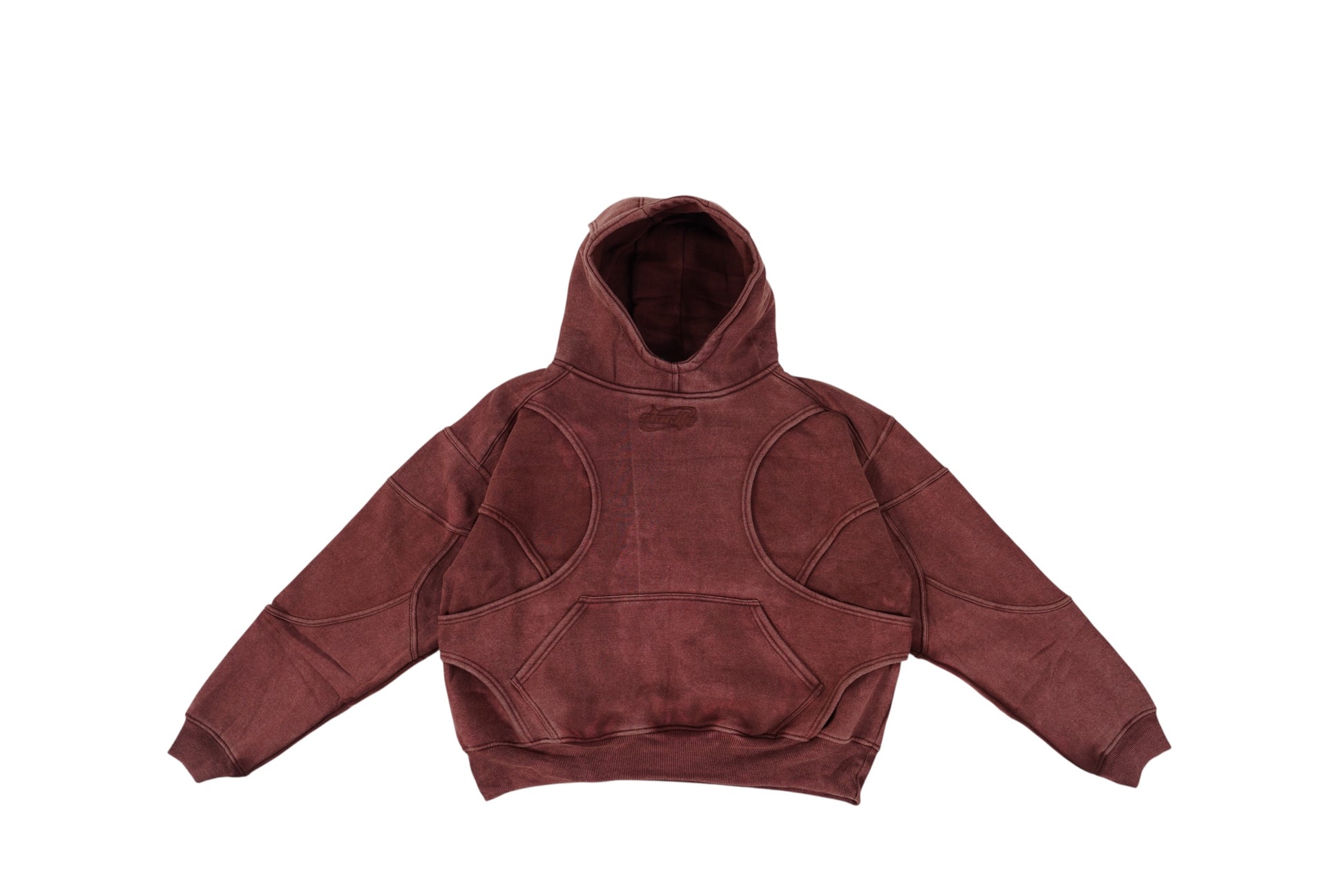 Crafted from premium heavyweight fleece, the hoodie features curved, paneled construction across the chest, shoulders, and sleeves to create subtle dimension and a contoured fit. The integrated front pocket blends seamlessly into the garment’s engineered layout, while ribbed trims at the cuffs and hem provide structure and hold. Minimalist branding at the chest keeps the look clean, allowing the construction to take center stage.