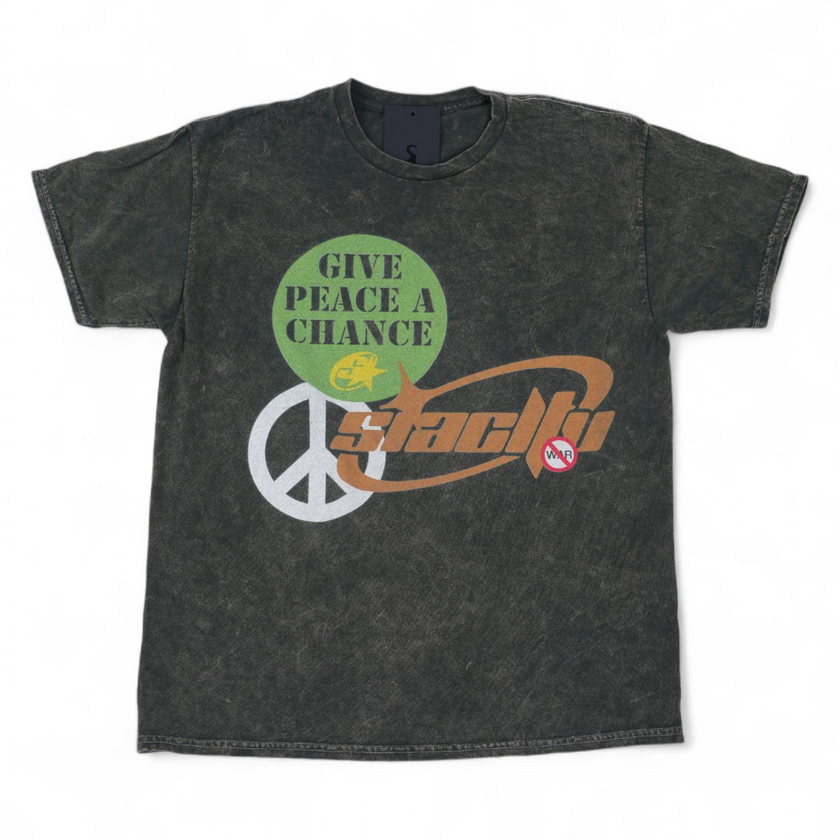 "GIVE PEACE A CHANCE" DARK OLIVE VINTAGE FADED WASH T-SHIRT (INHOUSE)