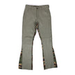 Flared leg with raw edge finish at ankle