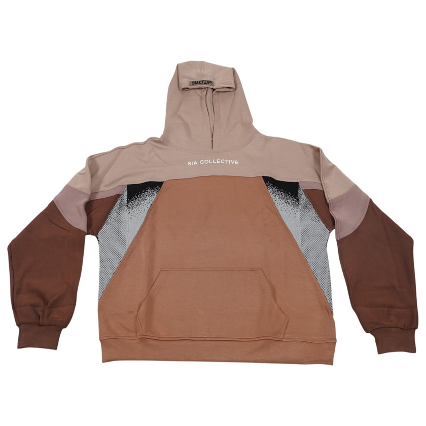 Add a modern spin to your streetwear collection with this SIA Collective hoodie. The color palette is a carefully curated blend of warm browns and tans, accentuated by bold, geometric paneling across the chest and sleeves. A crisp white “SIA Collective” logo stands out against the earthy hues, adding a signature statement to the design.