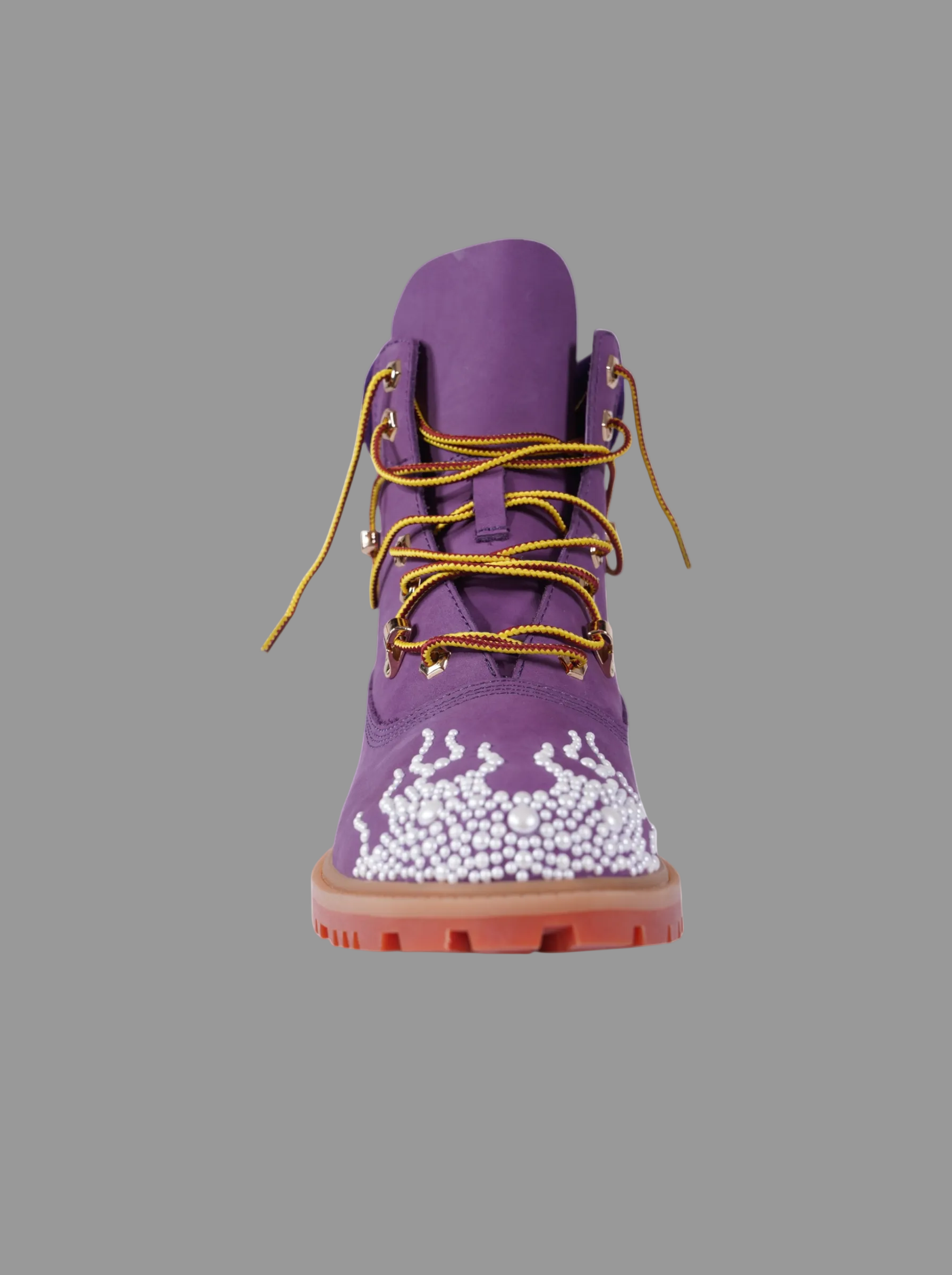 Bold in color and grounded in craft, the Purple Pearl Deconstruct Boot redefines utilitarian footwear through a statement-driven lens. Constructed in rich purple nubuck, the upper delivers a soft, velvety finish with depth and saturation, while the suede neck opening adds tonal contrast and a plush, elevated feel at the ankle.