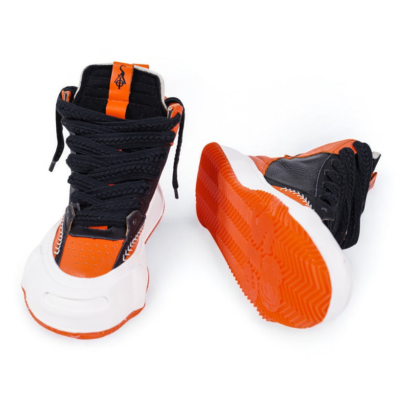 Turn heads with this electrifying high-top sneaker designed for bold, modern style with a futuristic twist. The perfect blend of luxury materials and edgy streetwear design, this sneaker redefines statement footwear.
