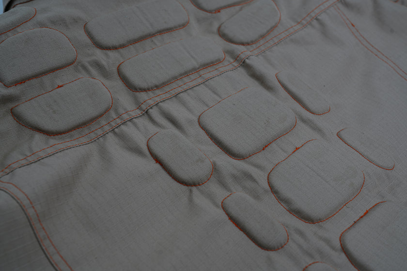 - Shoulder and upper chest panels with stitched padding details for a modern, industrial-inspired aesthetic.